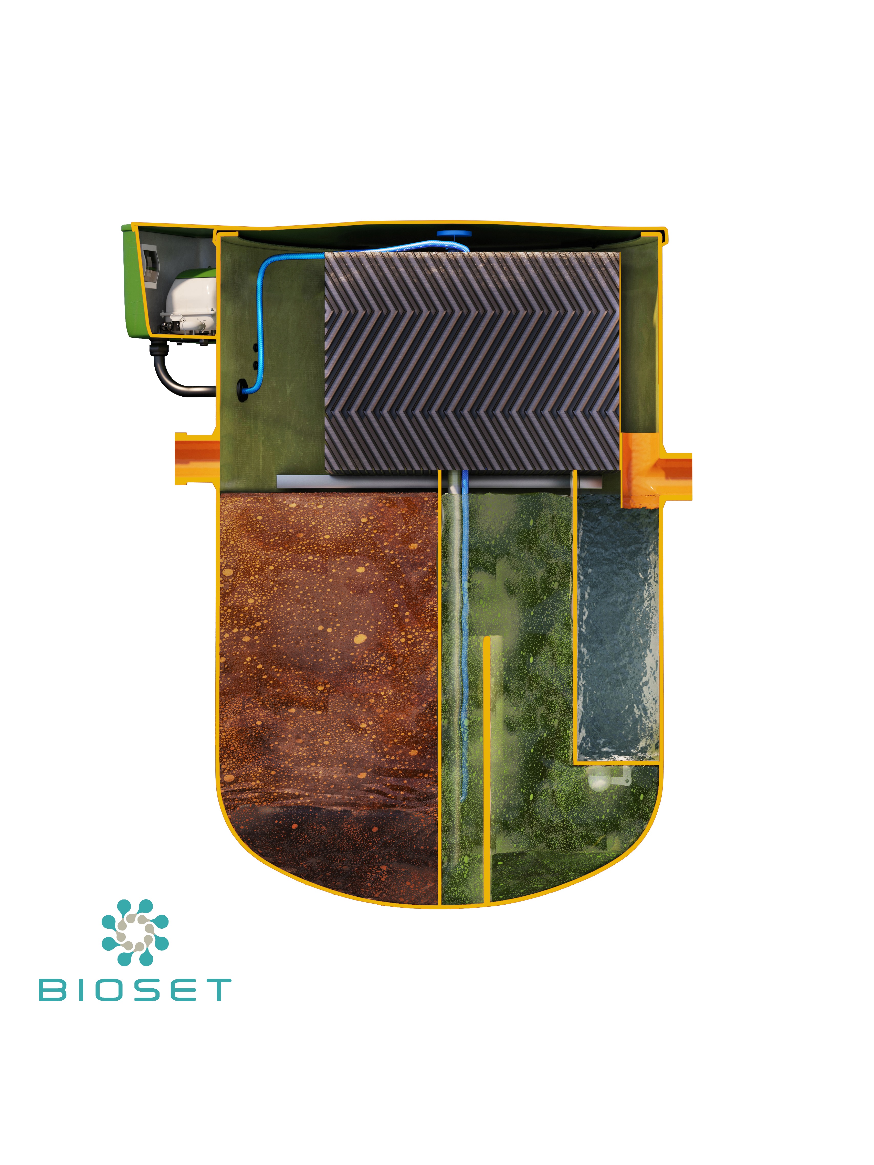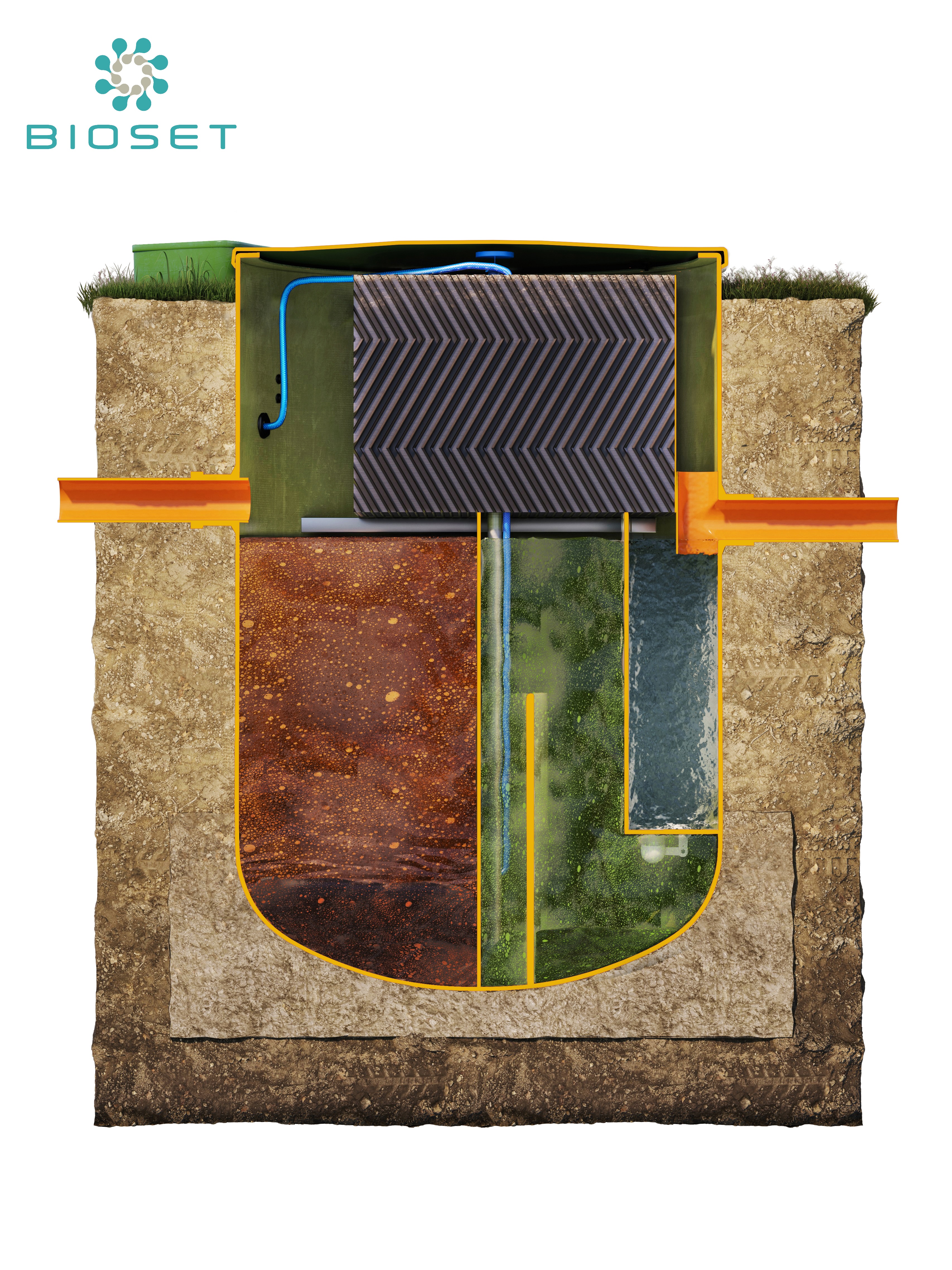 - Materiał zbiorniki: wysoce odporne na zgniatanie oraz starzenie się GRP, żywica poliestrowa wzmacniana włóknem szklanym